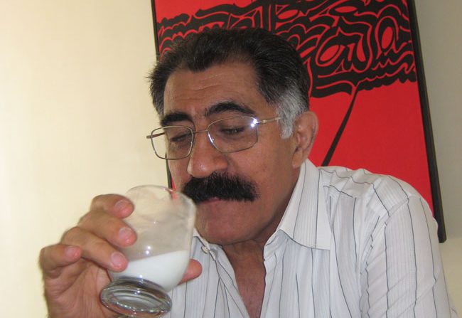 Well, doogh is a yogurt-based beverage (seasoned with salt and dried mint and garnished with fresh mint, sometimes carbonated, sometimes not) that in some ways may be considered Iran’s national drink. It’s what the featured (gregarious and very charming) Iranian gentleman is drinking.