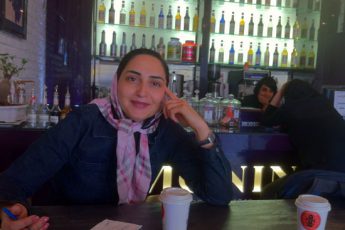 This is my friend Haleh, and here are two pix I snapped of her when we met up one sunny spring day at the Seyhoun Art Gallery in Tehran — where I was interviewing the owner of the gallery. (At the time, Seyhoun gallery had Reza Afasari‘s solo “Sealed Letters to Myself” painting exhibition.) Afterwards, Haleh took me to the House of the Artists (an art hub in the middle of a beautiful Persian garden) where we checked out lots of artwork; had a very nice lunch where I tried a tamarind drink for the first and probably last time in my life, and we almost went to see a rooftop staging of a play as well but left that for another day. Later on, Haleh and I also ended up taking a short memorable trip to Yazd together that was a blast. Getting a chance to finally see and hang out with this lovely childhood friend was one of the immense pleasures and rewards of this trip.